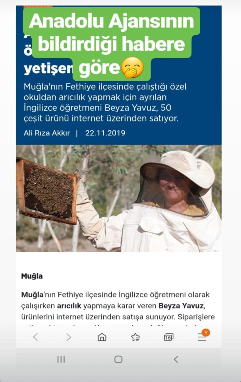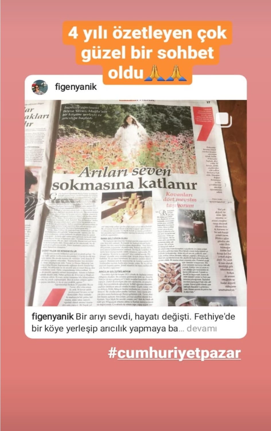 10 yıldan beri Fethiye yakınlarında bir arıcı köyünde arılarla birliye bir yaşam sürmektedir.