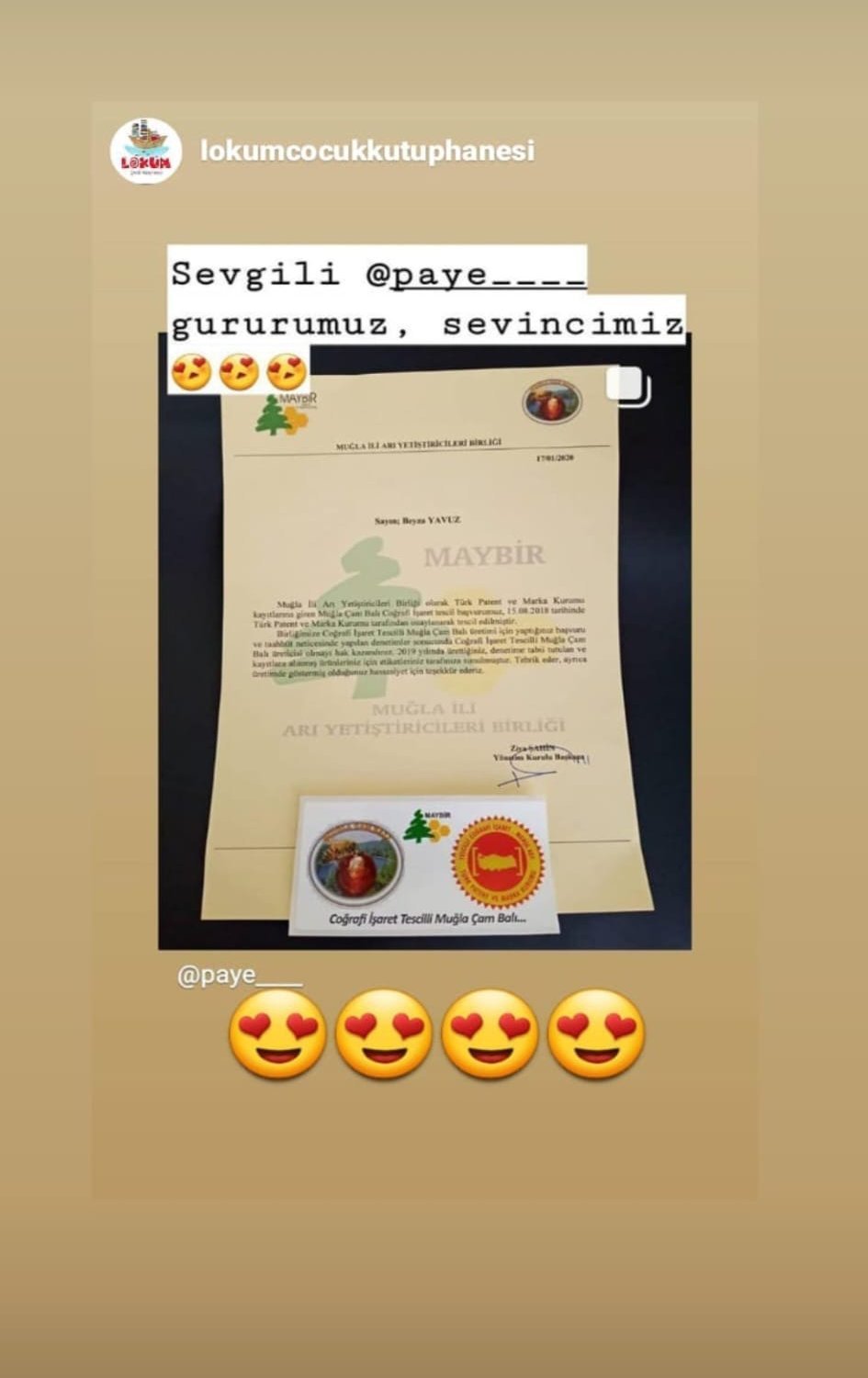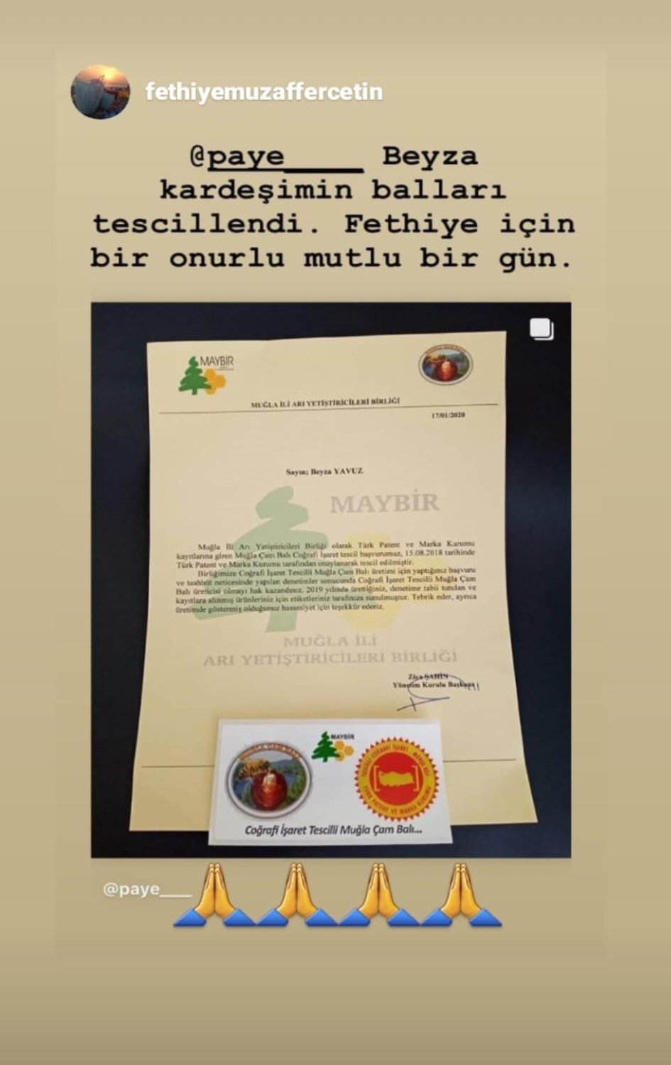 ‘Paye Arıcılık be Arı Ürünleri’ ismindeki markasıyla arılardan topladığı bal, balmumu,propolis gibi ürünleri çevresinin şifasına sunar.